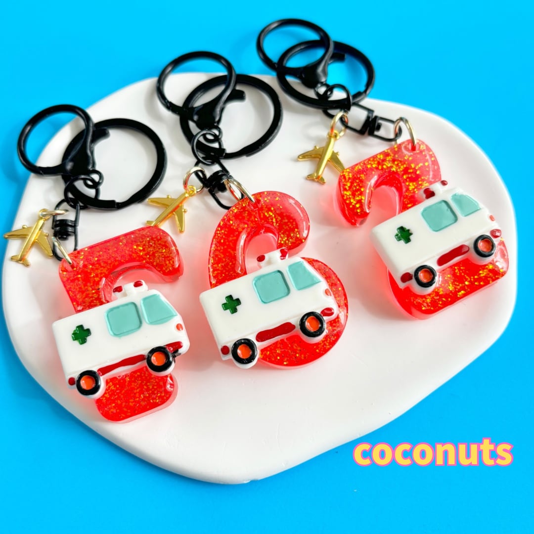 働く乗り物 イニシャルキーホルダー